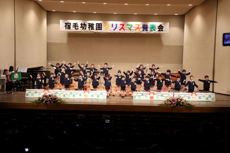 令和3年12月11日(土)に行われました令和3年度クリスマス発表会の年長組(5歳児)の姿です。年少組(3歳児)・年中組(4歳児)も広い舞台で堂々と発表することができました。